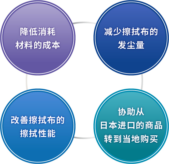 一站(zhàn)式供應作(zuò)爲無塵室用(yòng)品供應商,以在日本國内銷售40多年的BEMCOT®爲中心,生産銷售各種各樣的商品。