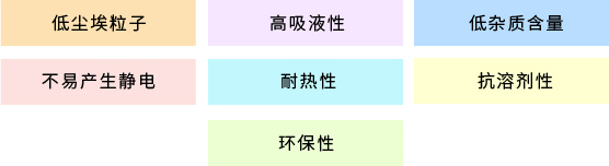 具有下(xià)述特點。各種特點發揮作(zuò)用(yòng),取得綜合效果,從(cóng)而實現(xiàn)了(le)滿足無塵室擦拭無紡布要求的性能(néng)。