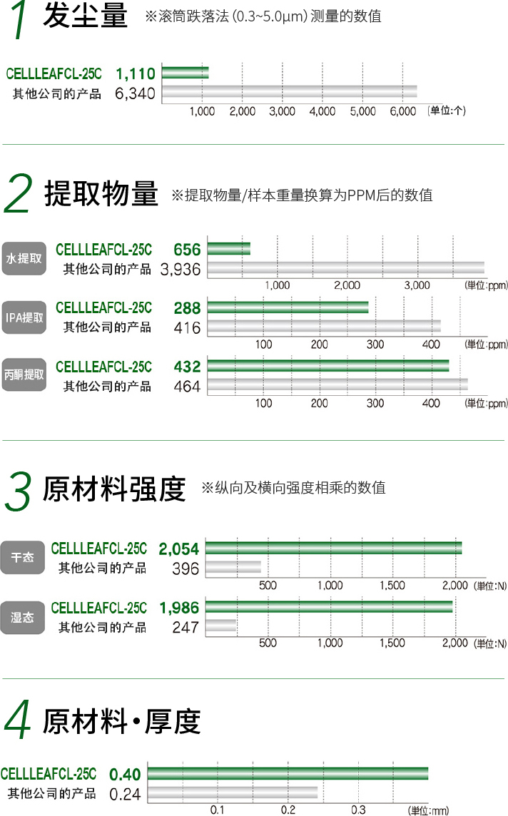 通過使用(yòng)嚴選的素材,将發塵控制在極小(xiǎo)限度的擦拭無紡布。